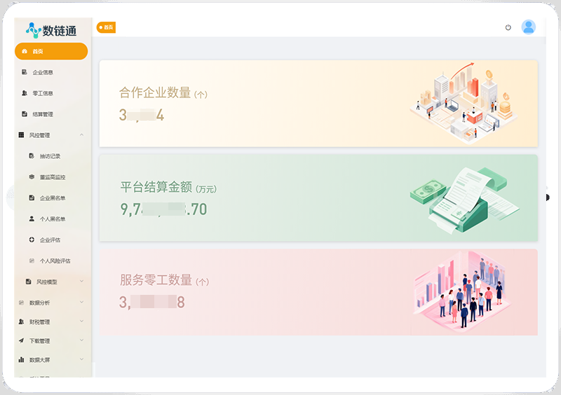 数链通,是专注于灵活用工与数字化结算解决方案的专业服务商,自创立起,便锚定新经济形态发展需求,以技术 + 平台 + 服务为核心商业模式深耕行业。始终聚焦即时配达、网约出行、在线平台等核心细分领域,凭借扎实的行业积淀与成熟的服务体系,稳步拓展全国重点区域业务版图,成为新经济用工与结算领域的资深实践者。